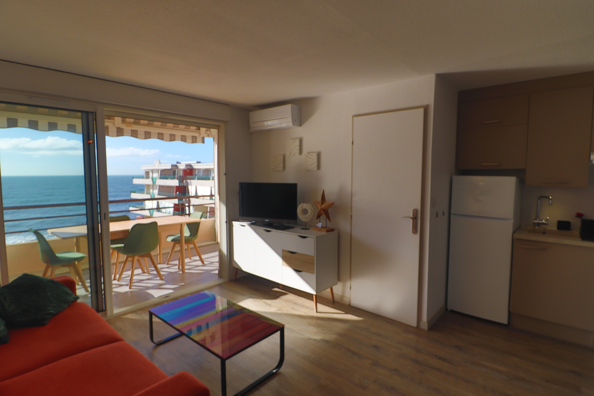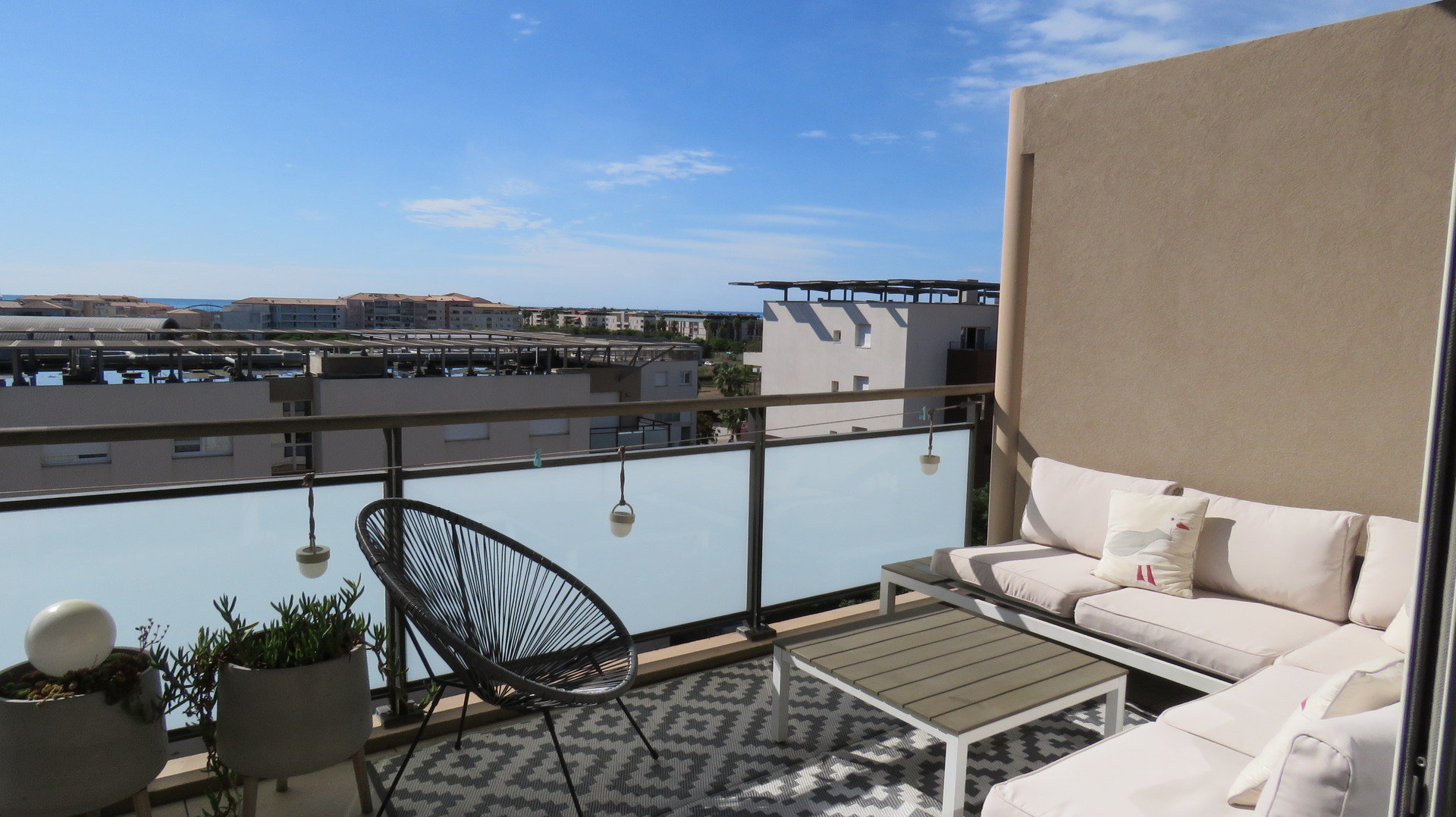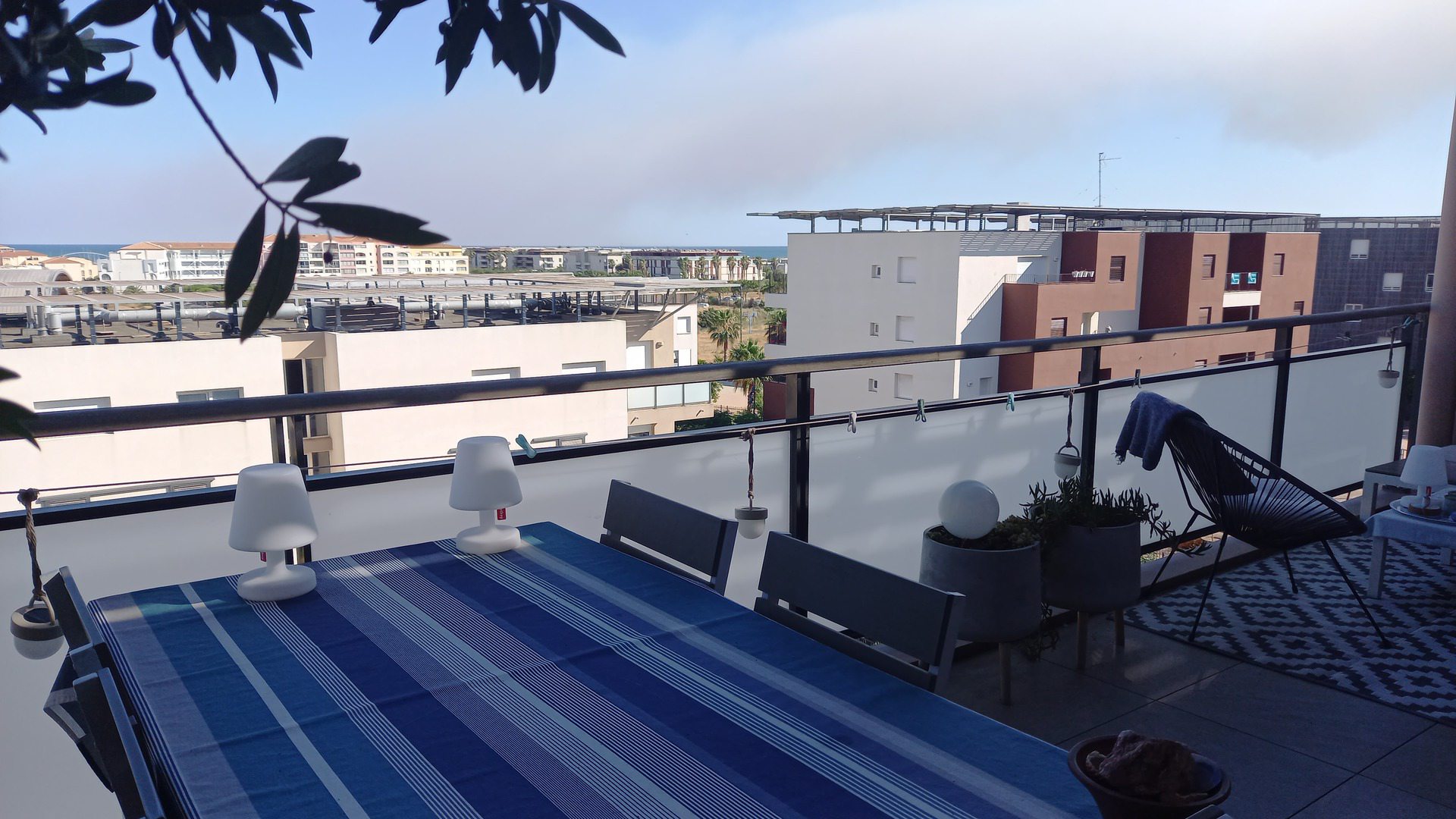 Exceptionnel! T2 clim wifi + loggia avec terrasse d'angle accès privatif à la plage!